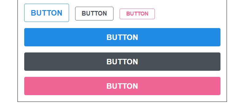 function App() { return ( <div className="App"> // ... <div className="buttons"> <Button size="large" fullWidth> BUTTON </Button> <Button size="large" fullWidth color="gray"> BUTTON </Button> <Button size="large" fullWidth color="pink"> BUTTON </Button> </div> </div> ); }