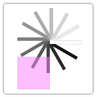 function draw() { var ctx = document.getElementById('canvas').getContext('2d'); var sin = Math.sin(Math.PI / 6); var cos = Math.cos(Math.PI / 6); ctx.translate(100, 100); var c = 0; for (var i = 0; i <= 12; i++) { c = Math.floor(255 / 12 * i); ctx.fillStyle = 'rgb(' + c + ', ' + c + ', ' + c + ')'; ctx.fillRect(0, 0, 100, 10); ctx.transform(cos, sin, -sin, cos, 0, 0); } ctx.setTransform(-1, 0, 0, 1, 100, 100); ctx.fillStyle = 'rgba(255, 128, 255, 0.5)'; ctx.fillRect(0, 50, 100, 100); }반응형'DOM > Canvas' 카테고리의 다른 글